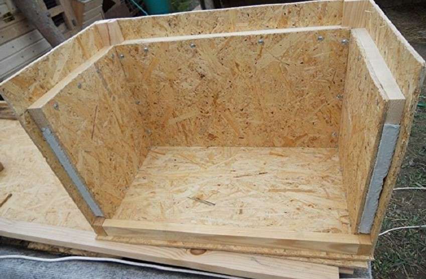 Из обрезков листа ОСП или фанеры собирают короб с лазом.