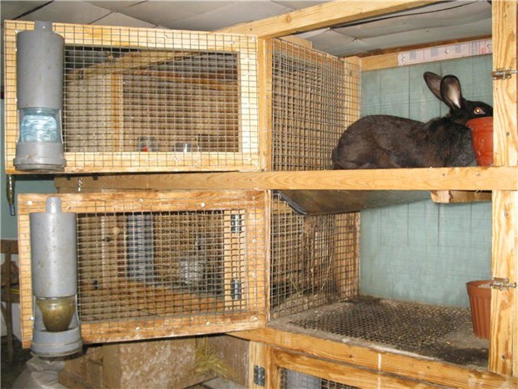 Для взрослых особей подходят двухъярусные и трехъярусные клетки. Это значительно экономит территорию, отведенную для кролиководства. Фанерные перегородки разделяют внутреннее помещение на места для приема пищи, отдыха.