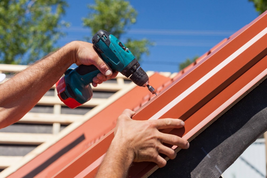 Крепление металлочерепицы к обрешетке осуществляется с помощью саморезов и шуруповерта