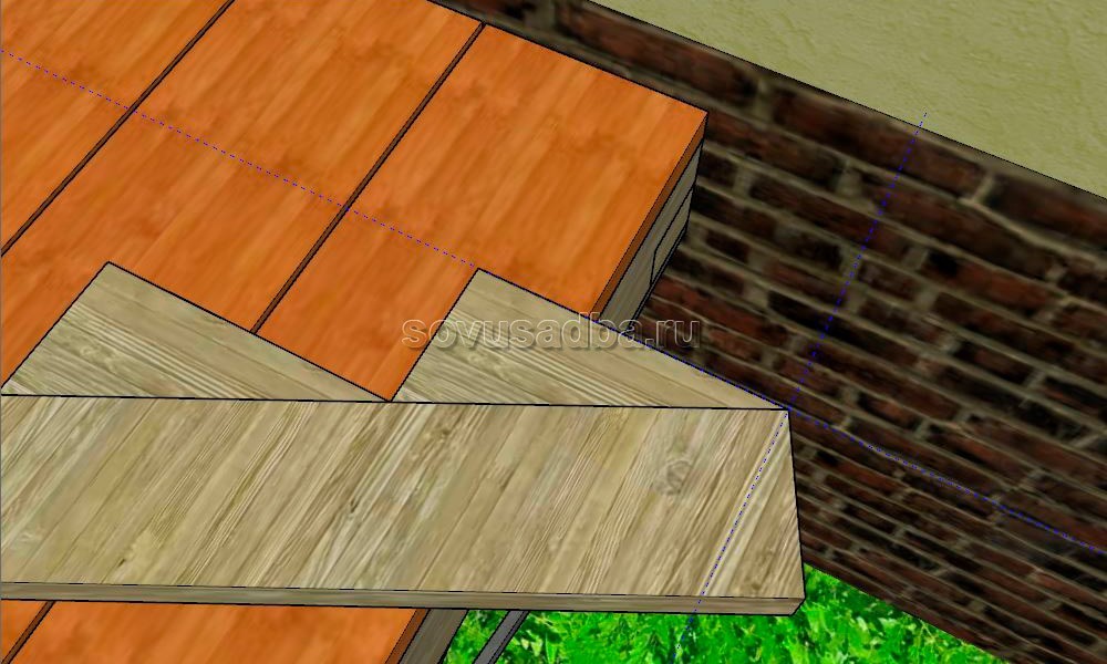 В этом вопросе мнения пользователей расходятся. Одни советуют подгонять доски настила как можно плотнее друг к другу, дабы упредить появление щелей свойственных рассохшейся древесине, а также делать уклон в 1,5-2° позволяющий воде спокойно стекать с настила.