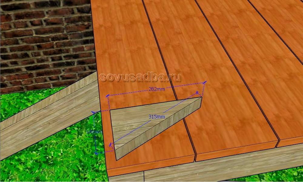 Результатом будет вот такой треугольник, а точнее 8 треугольников, после того как вы прибьете их к балке, последнюю легко будет правильно подрезать.