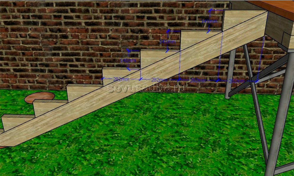 А если вы изготовите еще три таких же, то запросто построите своими руками крыльцо с двумя лестницами.