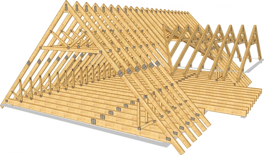 Деревянные стропильные фермы крепятся с помощью металлических зубчатых гвоздевых пластин