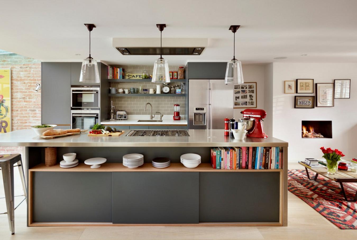 - Остров Хотя дизайн кухонного острова – это скорее вариант для более просторных комнат, здесь можно рискнуть. В кухне-гостиной площадью 15 см мойку, плиту или мини-холодильник допустимо вынести на отдельный остров только в том случае, если остальная кухонная мебель будет правильно расставлена. Возможно, было бы логично отказаться от обеденной группы, оставив этот остров местом для пикника.