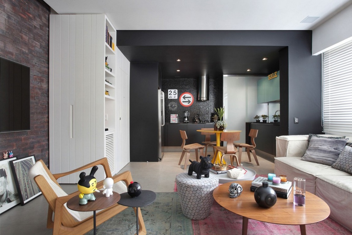 Лофт может одновременно сочетать в себе ультрасовременные, функциональные приборы и ретро-технику. Такая комбинация делает обстановку невероятно стильной и оригинальной. В зоне отдыха могут располагаться отреставрированные антикварные мебельные предметы, а кухня оформляется обеденным столом нестандартной формы со стульями из яркого цветного или прозрачного пластика.