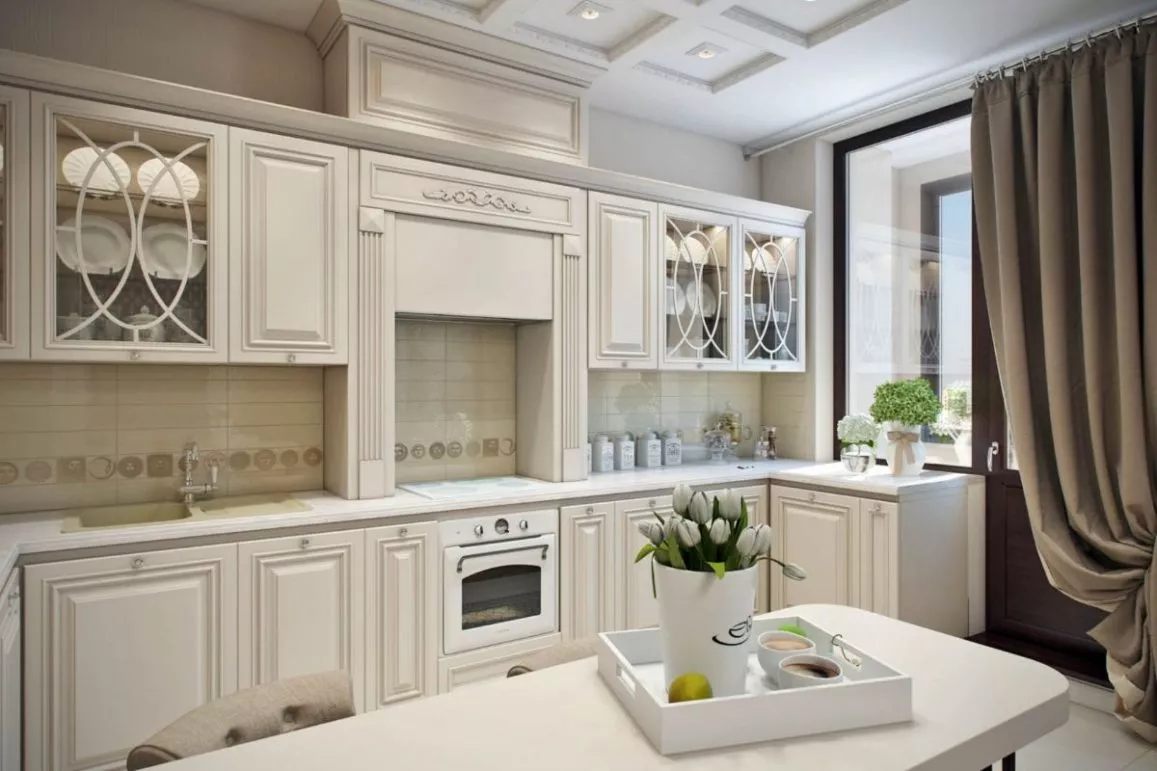 Тем, кто предпочитает упорядочить предметы, выдержать симметрию при расстановке кухонного гарнитура, рекомендуется обратить внимание на неоклассику