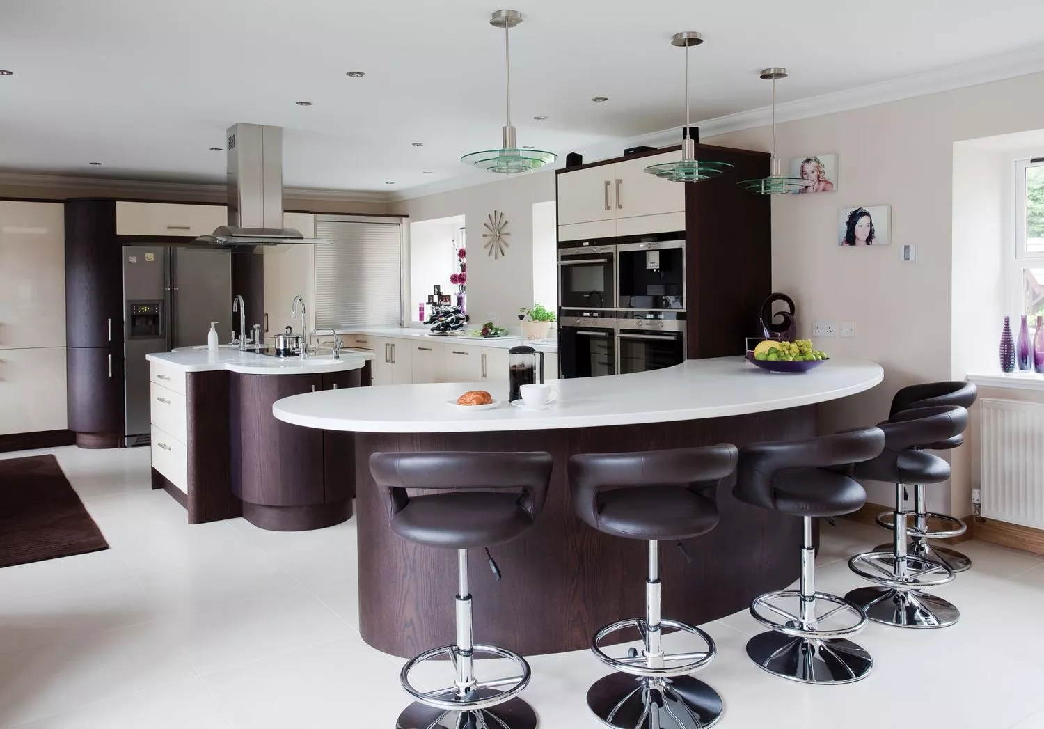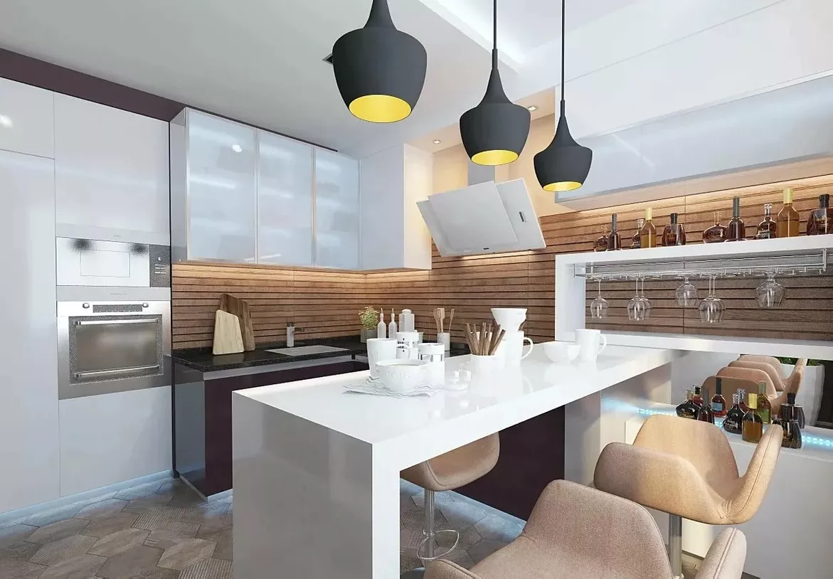 Современный стиль допускает оформление пространства без обеденного стола, но с барной стойкой