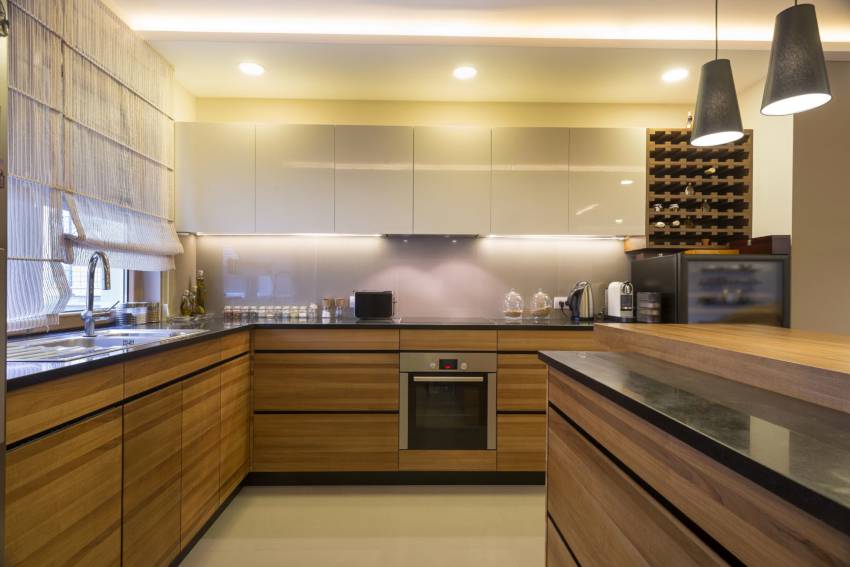 - В дизайне присутствует минимализм. Бытовая техника, лишние предметы спрятаны.