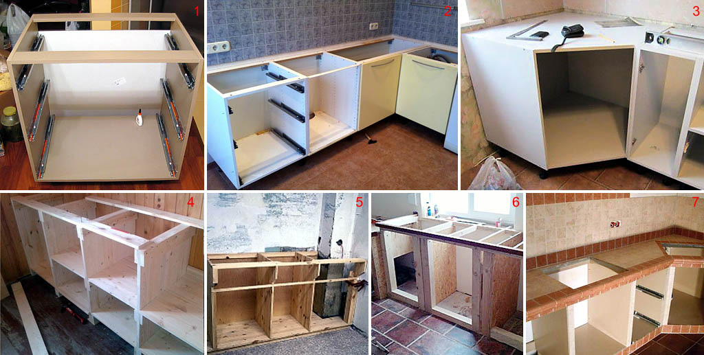 Когда шкафы собраны, дело за установкой. Начинать установку следует от угла.
