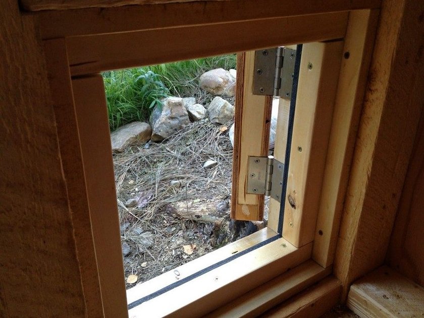 Обязательно наличие затворок: чтобы птица не травмировалась, и чтобы регулировать потоки воздуха в различное время года.