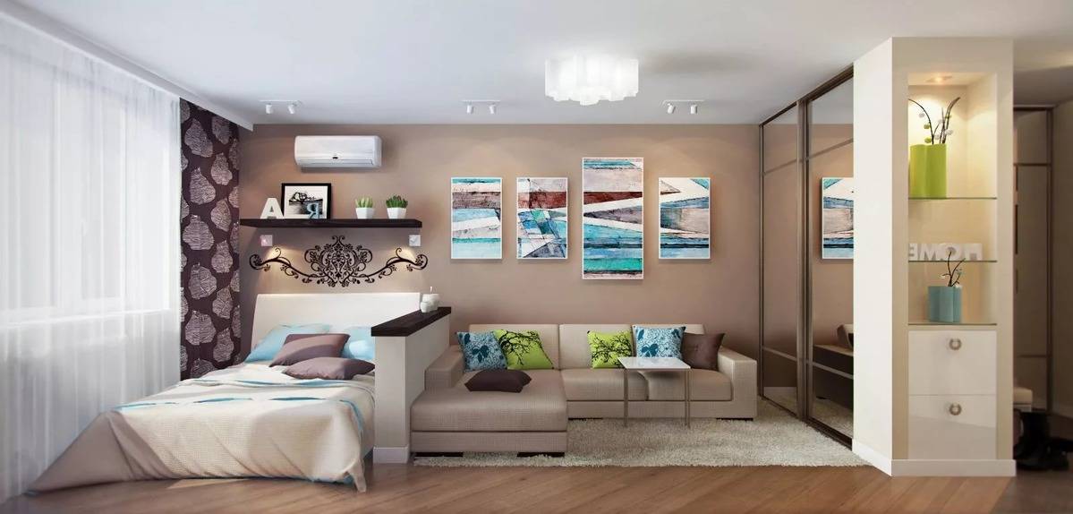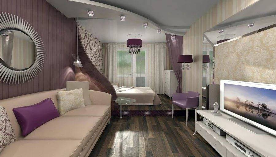 При разработке дизайна важно учитывать миниатюрность квартир. А совмещать и отделить 2 части комнаты можно цветами, фактурами, мебелью, перегородками, подиумами