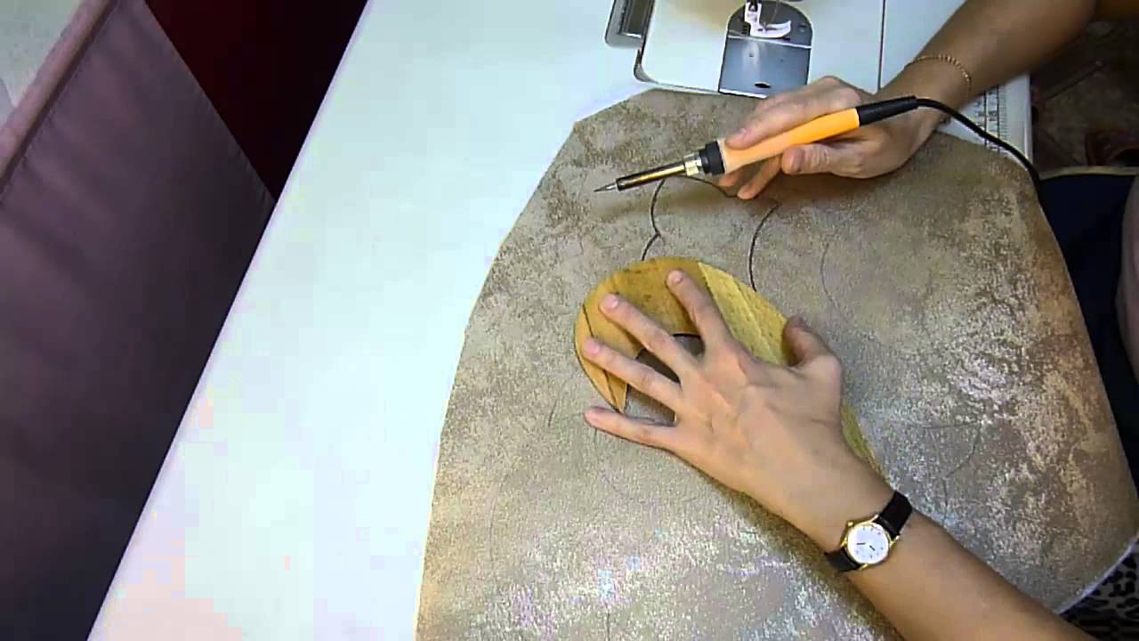 К уплотненной заготовке прикладывается трафарет или лекало для разметки перфорации – отверстий, образующих рисунок. Сложно ножницами прорезать ткань с подкладкой без повреждений. По синтетике удобно работать бытовым электроприбором для выжигания узоров с самой мелкой насадкой.