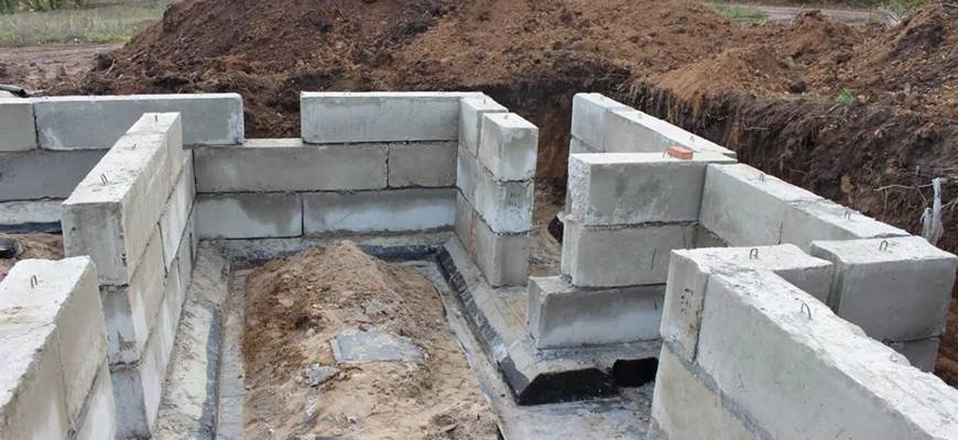 Фундаментные блоки – удобные по размеру, но иногда из-за их массивности без крана не обойтись (надо доставить этот материал на территорию строительства, разгрузить и уложить в траншеи).