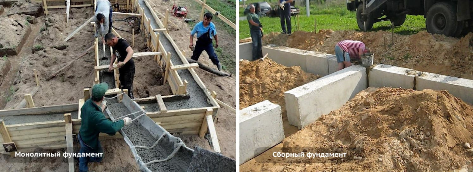 Существует два основных вида ленточного фундамента: