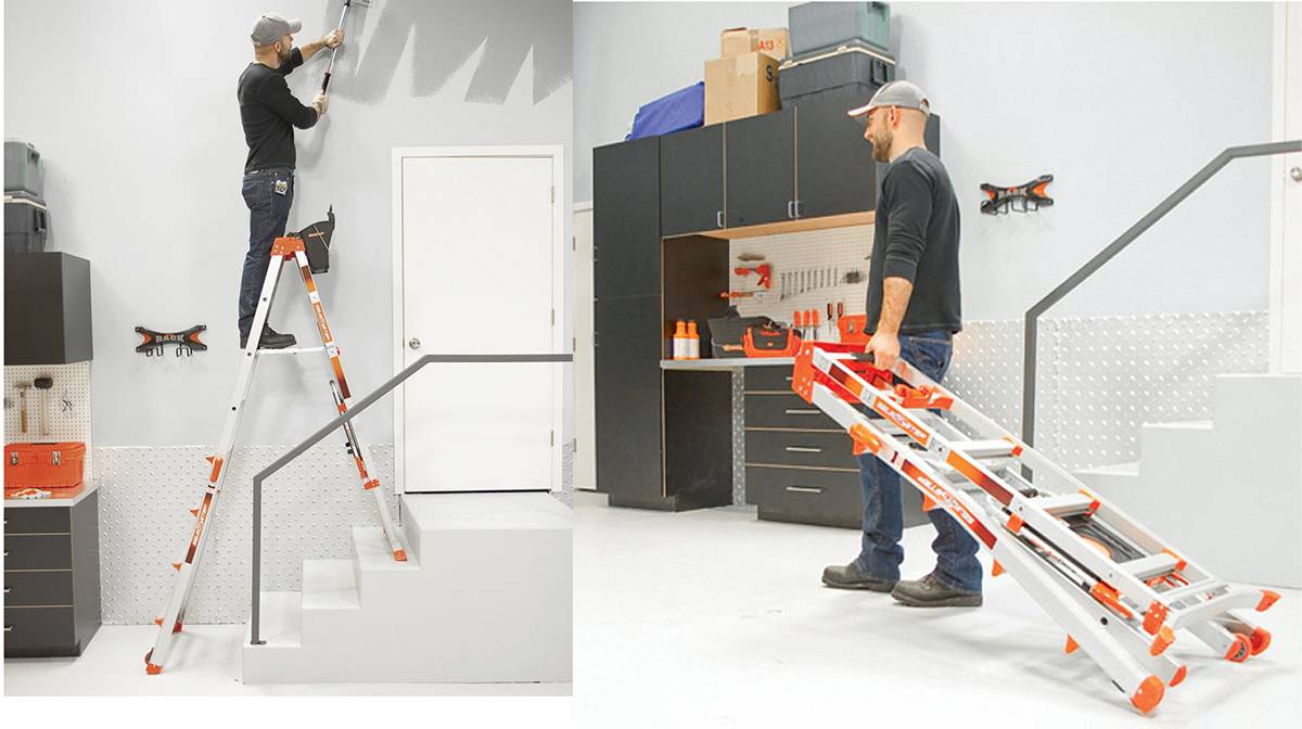 С помощью телескопической стремянки можно достигать разной высоты