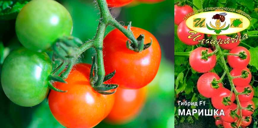 Гибрид «Ира» – для выращивания в открытом грунте или теплице. Не растрескиваются в консервации плодов на зимний период. Плоды бардовые овальной формы, каждый отдельный томат весит 35 гр. созревание происходит за 95 дней.