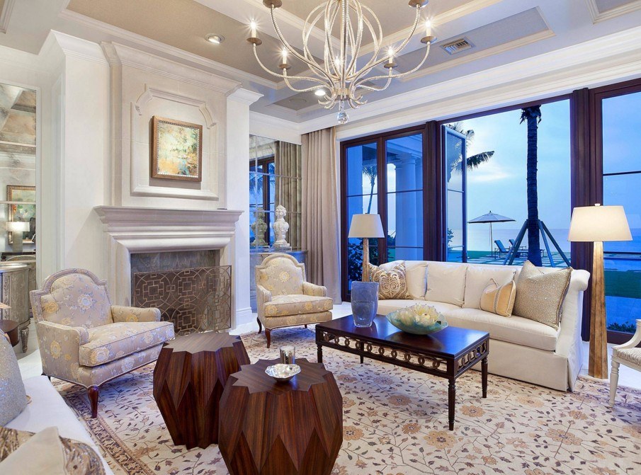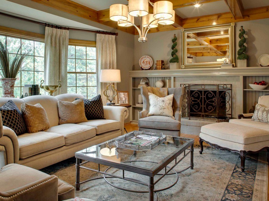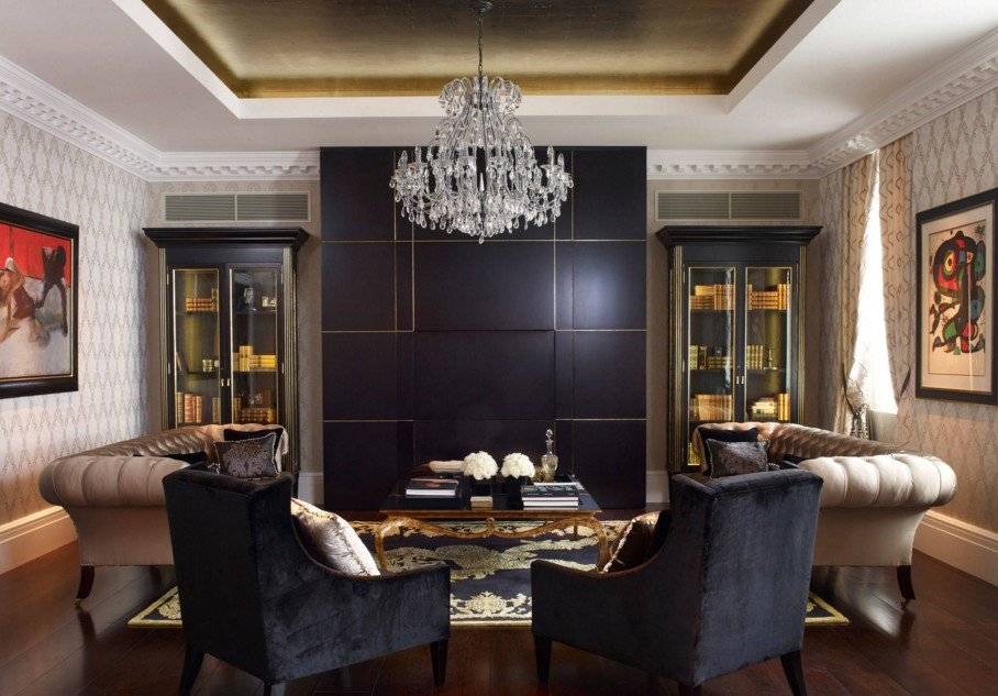 Классическая люстра в интерьере гостиной
