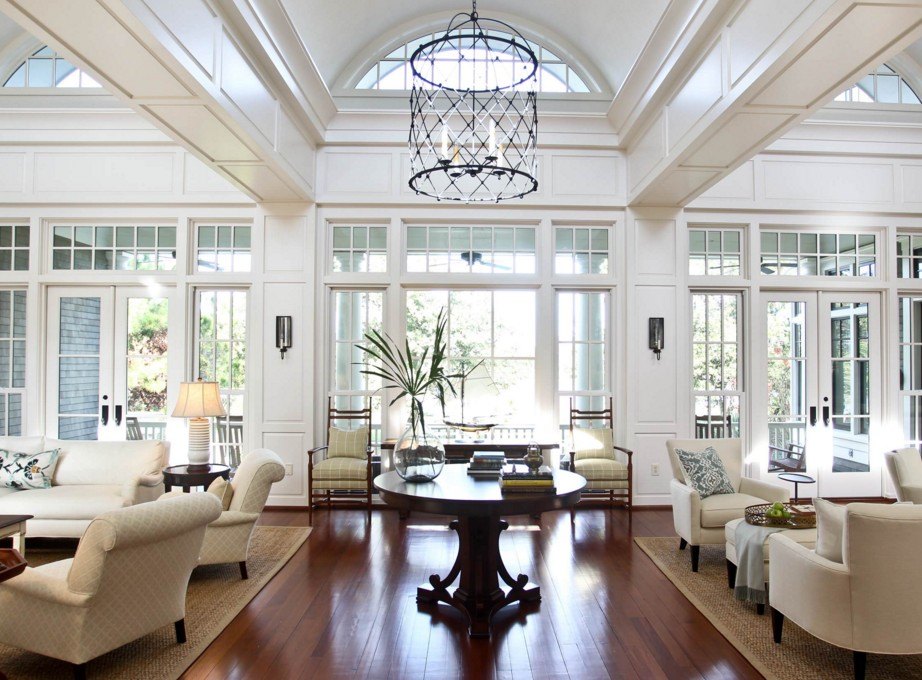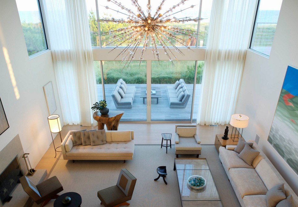 Большая люстра в просторной комнате