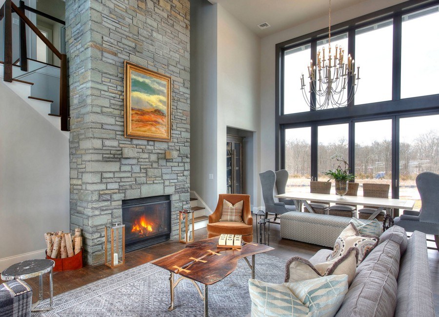 В будущем году дизайнеры советуют создавать интерьеры с добавлением «капельки» Фьюжена и Эклектики. Это значит, что вы можете оживить строгий минималистический интерьер, используя люстру в псевдодеревенском стиле. Они должны быть выполнены из натуральных материалов.