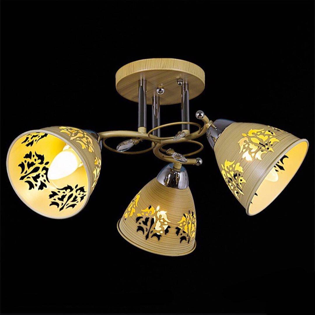 Главный элемент классических люстр – плафоны. Основные материалы для их изготовления – латунь, бронза, стекло, хрусталь. Плафоны имеют элегантные плавные формы, на них может быть нанесен мягкий геометрический или цветочный узор. Широко используется в дизайне классических люстр флористический стиль: сами плафоны выполняются в виде цветка или бутона, а украшаются они листочками и веточками из металла. Более массивными и тяжелыми выглядят люстры в античном стиле – плафоны имитируют мрамор, а в качестве декора используется бронза.