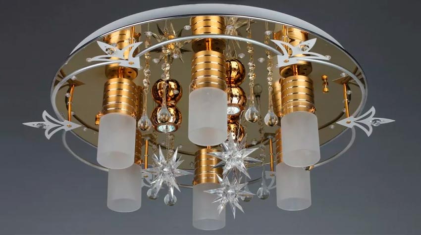 В зависимости от типа крепления люстры бывают разными. Потолочные люстры – такой тип люстр применяется для низкого потолка. И такие модели гармонируют с небольшим помещением. Они характеризуются небольшими физическими параметрами.