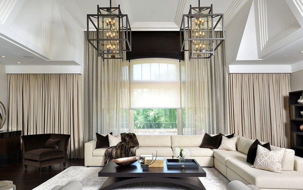 Длина и ширина напрямую влияют на размеры люстры и интенсивность освещения. Маленький прибор теряется в комнате и смотрится нелепо. Яркости не хватит и в углах образуются тени. А чересчур большая люстра зрительно сделает гостиную меньше и теснее.