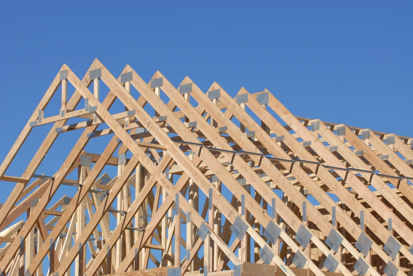 Деревянные стропильные фермы крепятся с помощью металлических зубчатых гвоздевых пластин