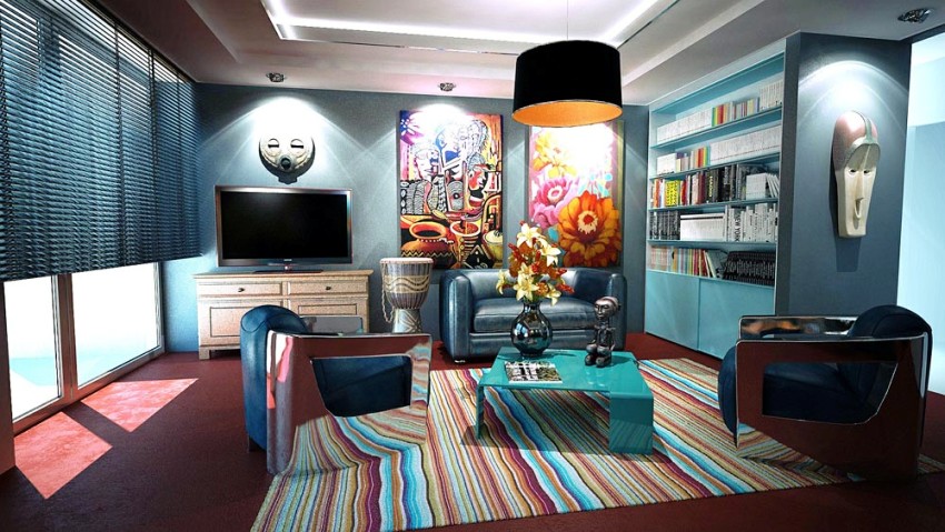 - Яркие детали в меблировке способствуют динамичному настрою и походят для гостиных, в которых планируется проводить шумные мероприятия. В противном случае, они начнут утомлять домочадцев.
