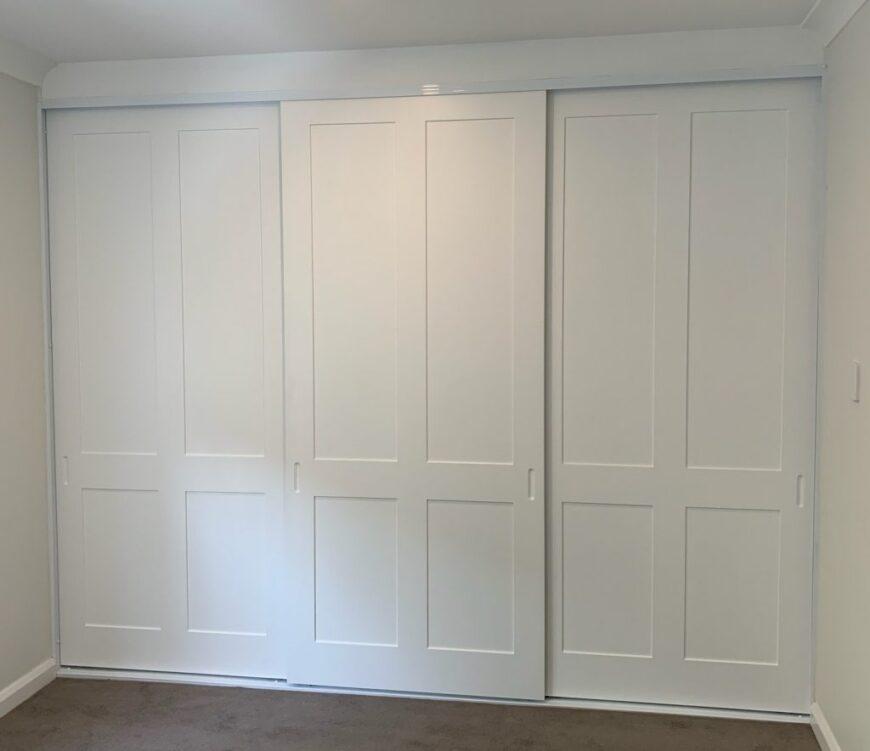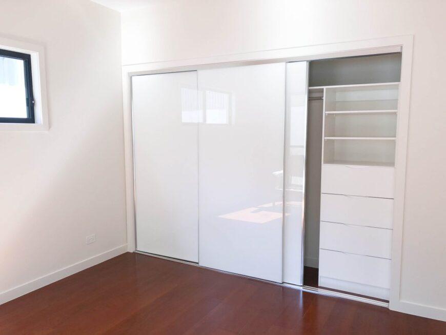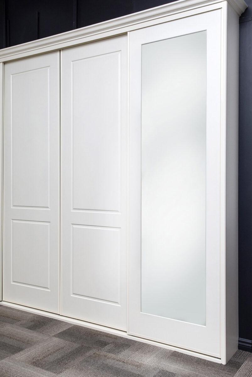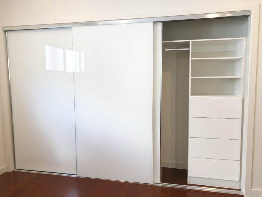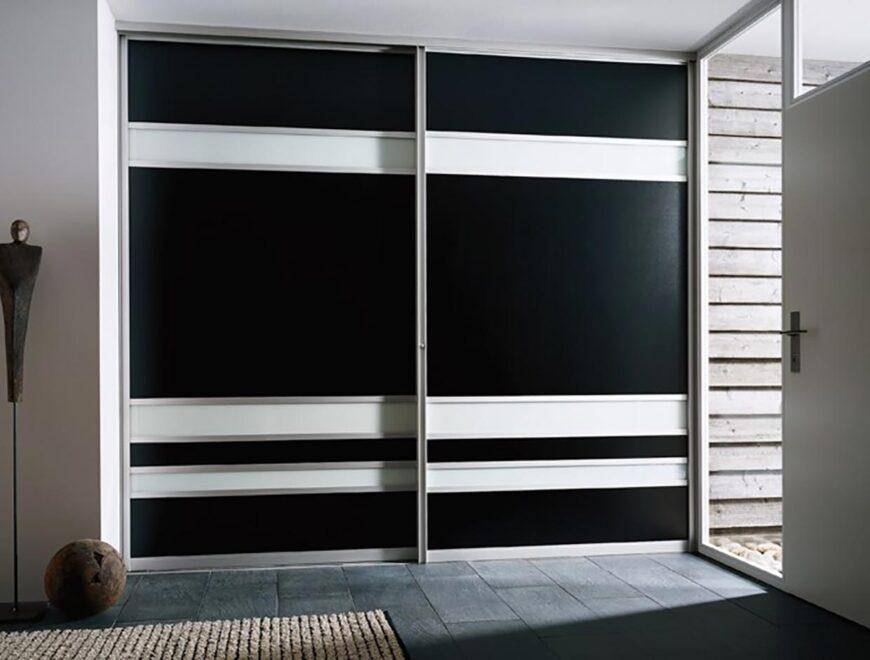 Двери-купе крепятся на стальной или алюминиевой рамке, по которой они перемещаются при помощи роликов. Выполняются в больших размерах и из различных современных материалов. Но открывается такой шкаф только частично или наполовину за счет задвигающихся друг за друга дверей.