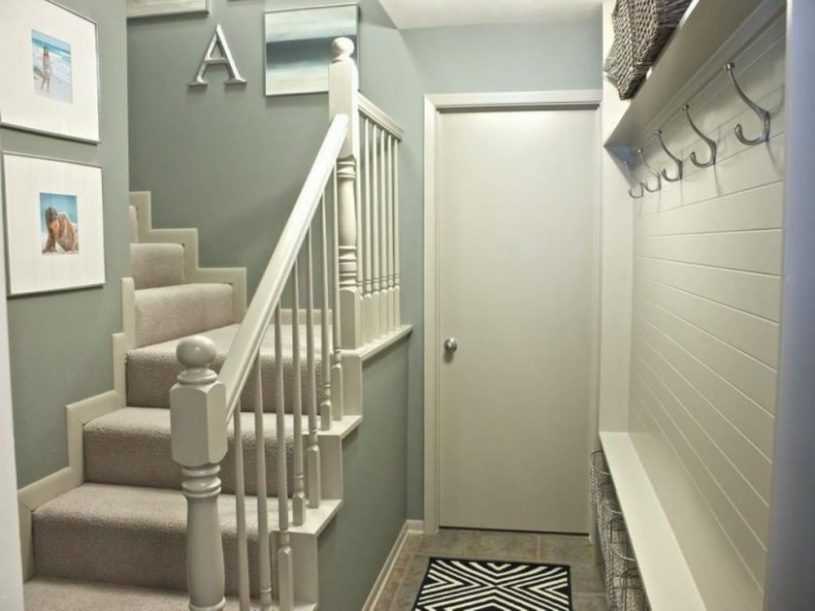Принципы минимализма хороши для небольшого прохода. Выбирайте для отделки стен базовые оттенки, без узоров и фактур. Декор используйте по минимуму; шкафы старайтесь выбирать встроенные, чтобы не резать пространство.