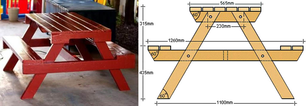 Внешний вид и чертежи столика для пикника или беседки из поддонов