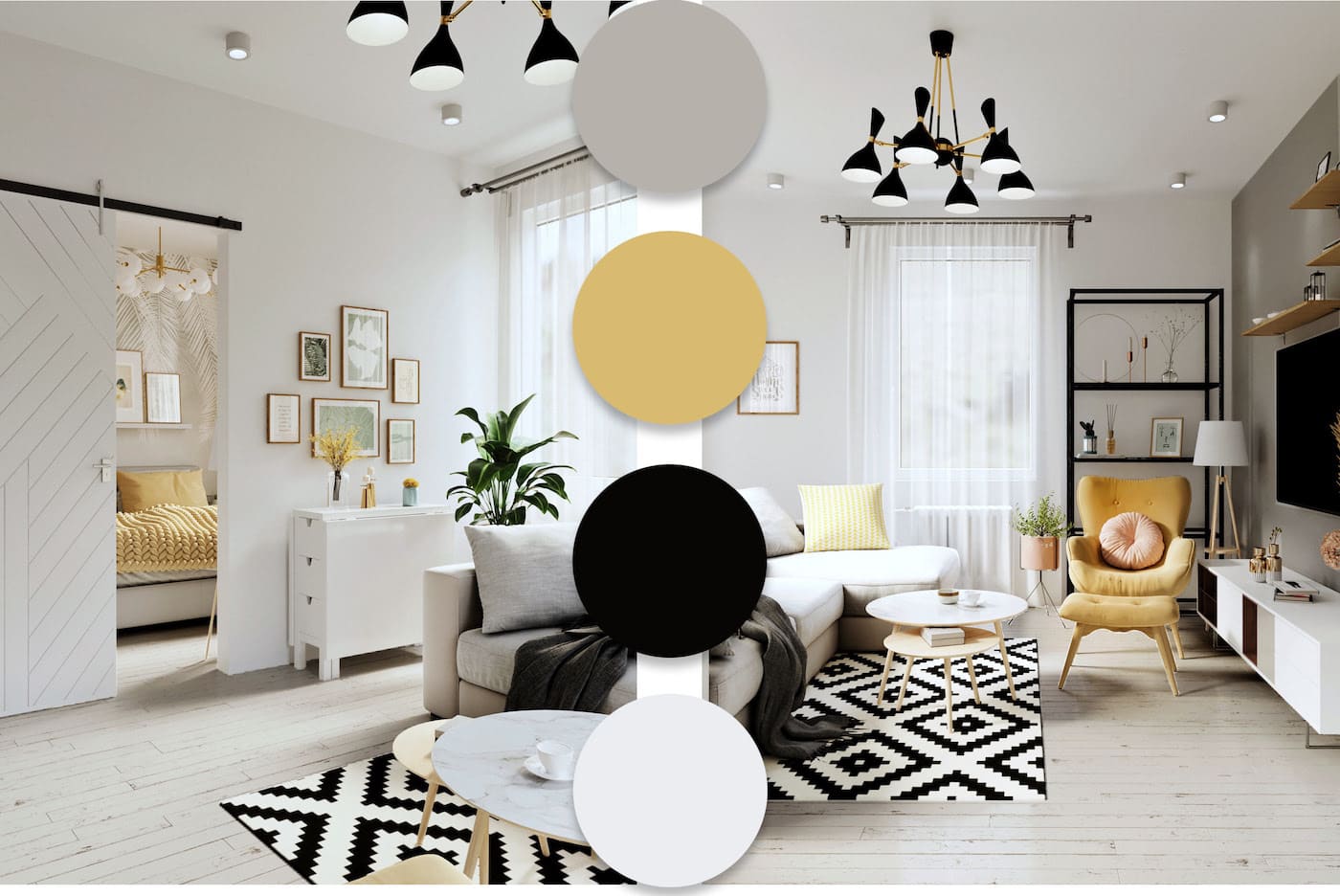 В качестве интерьерного акцента можно использовать ярко-желтые кресла