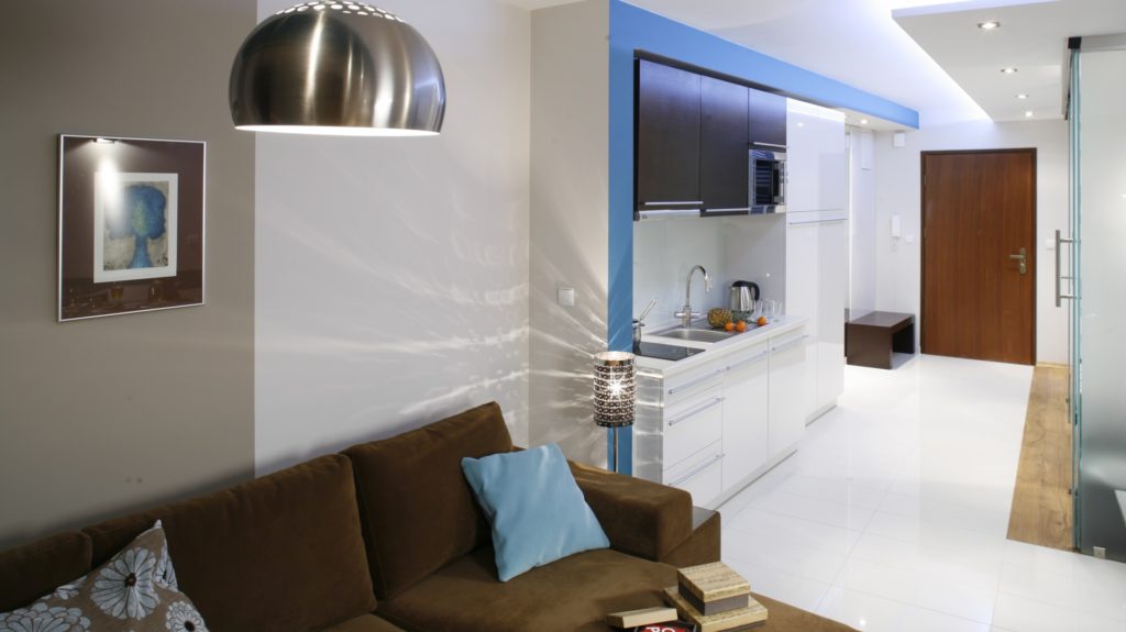 Вопрос зонирования в данном случае решается расстановкой предметов мебели, подходящими отделочными материалами и иными дизайнерскими решениями. Чем меньше площадь, тем виртуознее приходится быть специалисту, чтобы сделать квартиру максимально удобной и уютной.