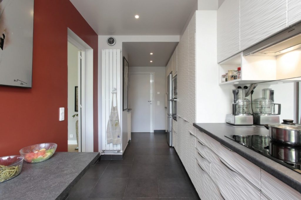 Декор также будет иметь важное значение в кухне-прихожей, чтобы расширить это несколько оригинальное пространство. Мы сделаем выбор в пользу изысканного украшения, которое не будет перегружать эту маленькую комнату. Когда дело доходит до покраски кухонной стены, светлые тона и блестящие поверхности, несомненно, будут идеальны, чтобы создать впечатление величия и ширины н кухне. Вы также можете сделать ставку на ультрамодный кухонный гарнитур, выбранной, скорее, в темных тонах, и высокими верхними шкафами, чтобы вести взгляд вверх и делать комнату больше