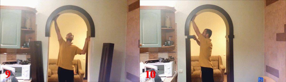 Для того чтобы арка хорошо установилась — стоит подготовить саморезы для дерева, специальный клей, шуруповерт, возможно дюбеля. Когда вы вставите деревянный вид арки в дверь – проверьте, все ли правильно: