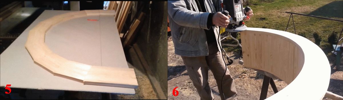 На следующий день склеенный наличник можно отшлифовать и обработать внешнюю сторону фрезером. Далее крепим наличник с обеих сторон к арке. После чего ручным фрезером заоваливаем внутреннюю сторону.