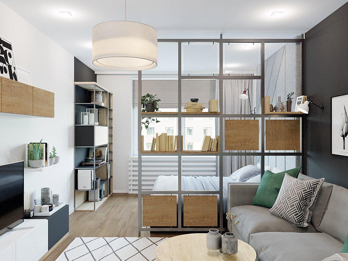 - Для спальной зоны лучше выделить дальнюю часть помещения, чтобы скрыть её от посторонних.