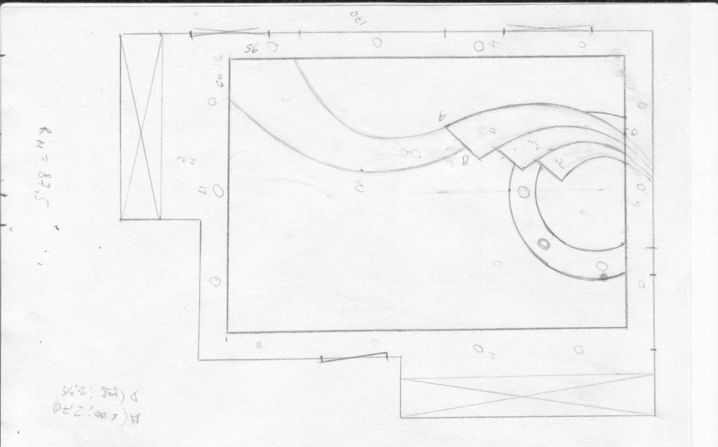 Важно, чтобы при проектировании для каждой криволинейной поверхности были найдены: центры дуг, радиусы, а для прямолинейных элементов — конечно, длина и высота. В нижнем левом углу устанавливается начало координат .