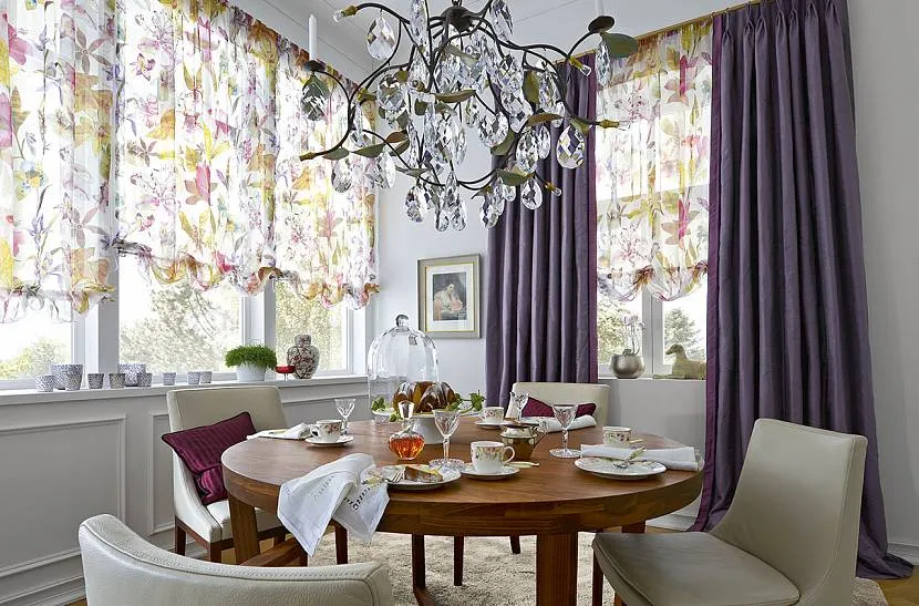 На окна в кухню лучше приобрести модель штор подъемного типа. К ним относятся: