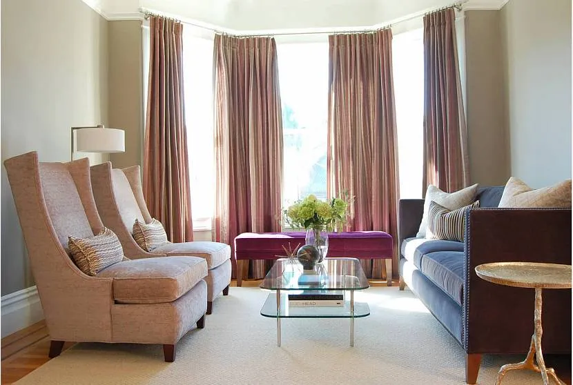 Важно помнить, что легкие и светлые ткани выбирают для небольших помещений или когда необходимо создать фон, например, в комнатах с большим количеством мебели. Для просторных гостиных используют многослойные, разноцветные варианты