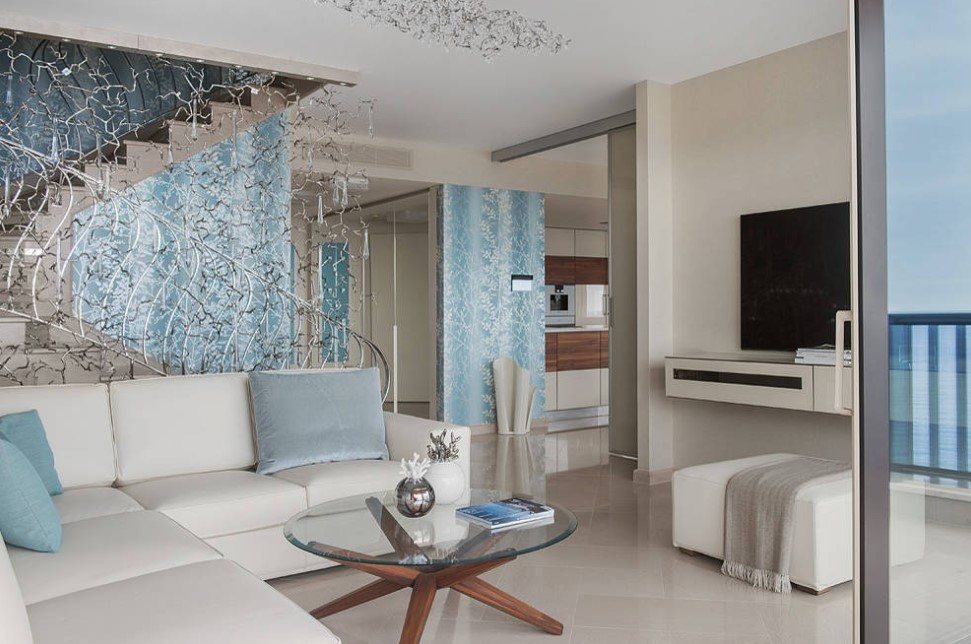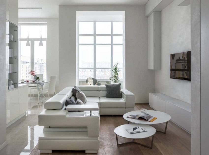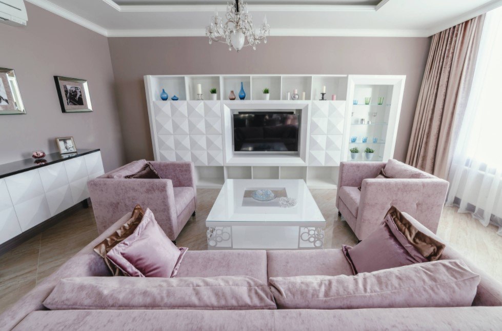 Полноценное оформление под слоновую кость с мягкой мебелью