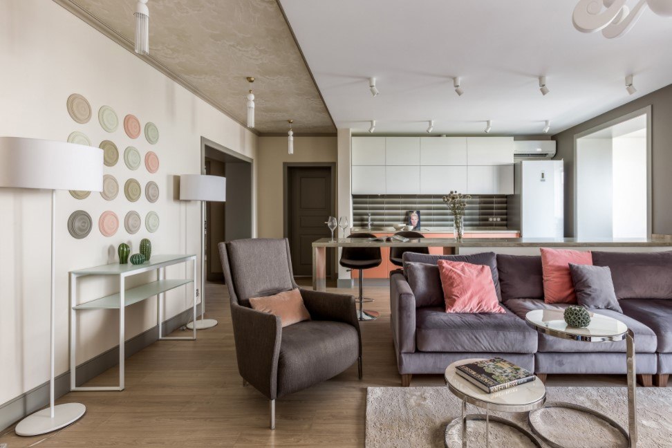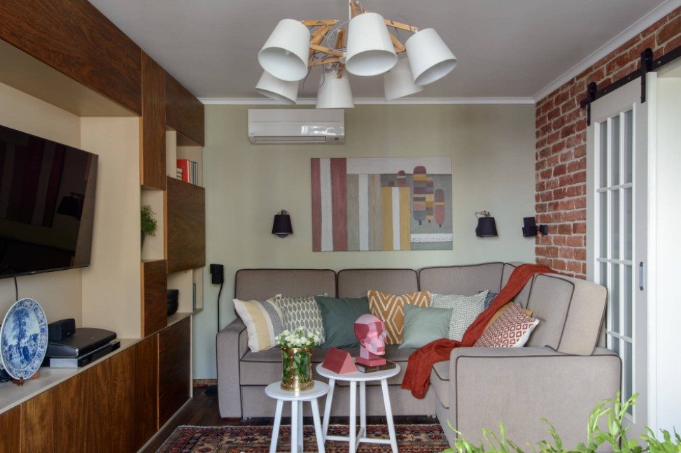 Если квартира у вас малогабаритная, то вы можете сделать гостиную из отдельных блоков. Если возникнет необходимость, эти модули вы можете свободно переставить, освободив жилое пространство для других целей. А если эти блоки вы дополните новыми конструкциями, и сделаете какие-то визуальные акценты, получите совсем новую гостиную без существенных вложений в ремонт.