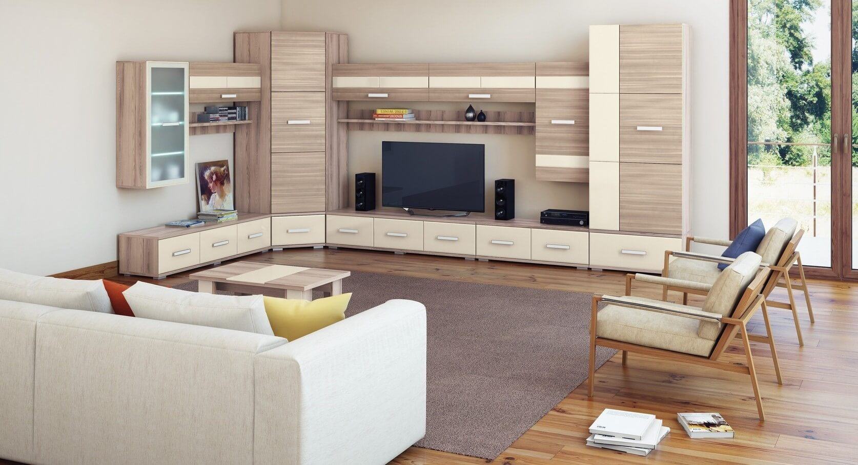 Далее поговорим о корпусной модульной мебели для гостиной.
