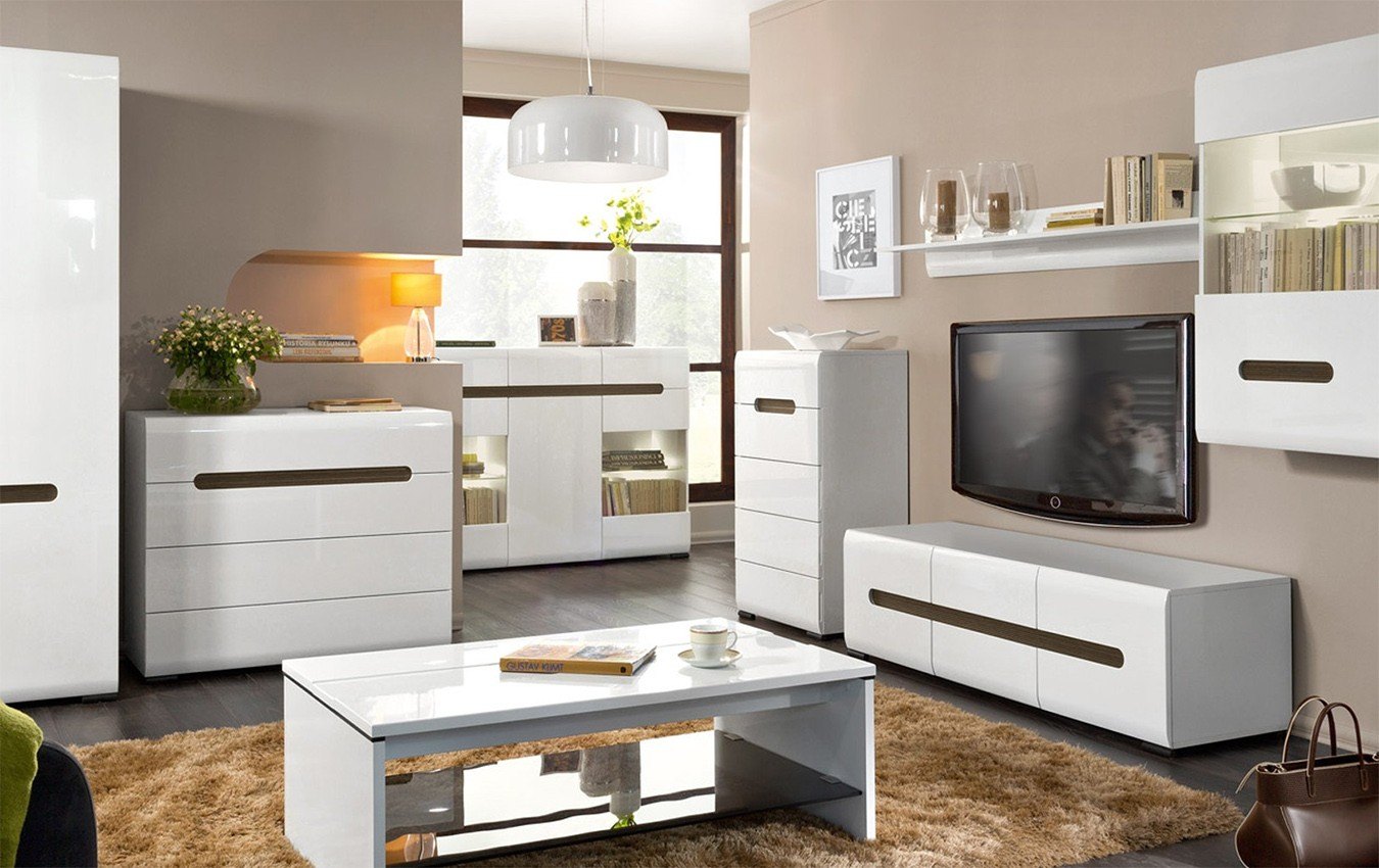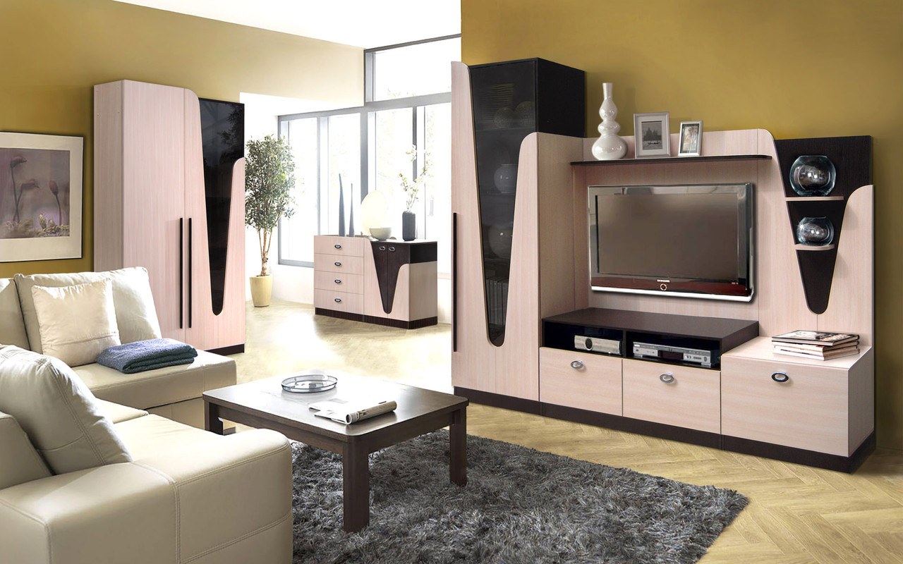Модульная мебель для гостиной в современном стиле значительно отличается от привычных массивных стенок. Главные её преимущества: