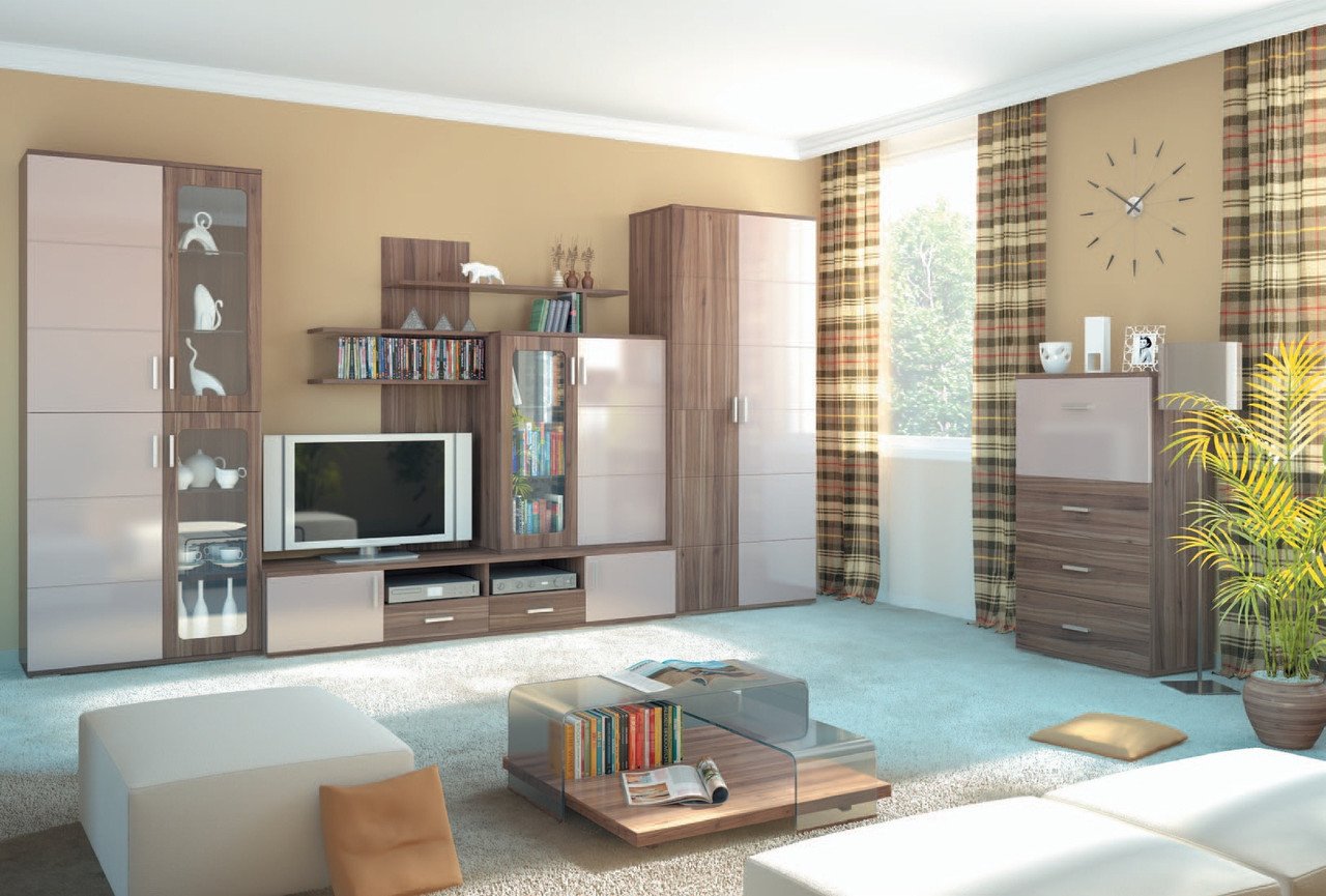 В настоящее время представлено несколько видов мебели для гостиной. Это мягкие изделия, модульные системы и корпусная мебель.
