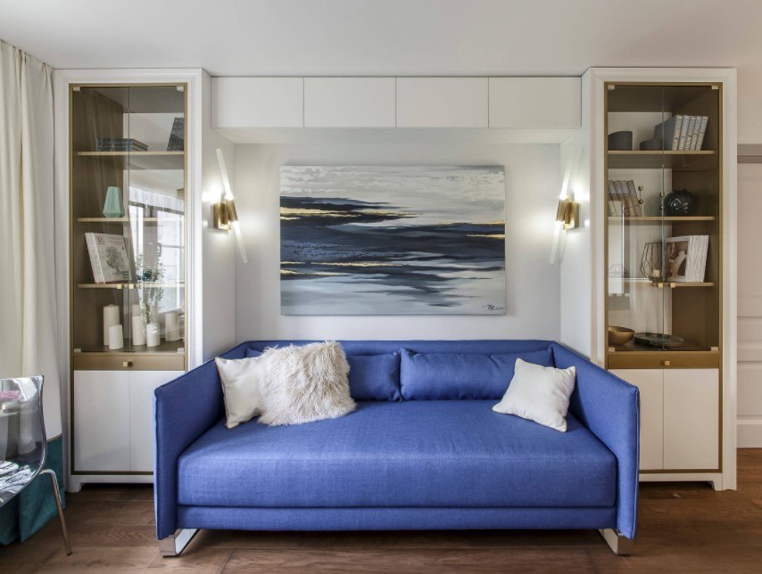 Вместо дивана и кресел можно приобрести роскошный, вместительный и удобный мягкий уголок, который легко трансформируется в несколько спальных мест, что идеально подходит для размещения гостей. Украшением современного интерьера может стать софа, которая подбирается в соответствии со стилем помещения.
