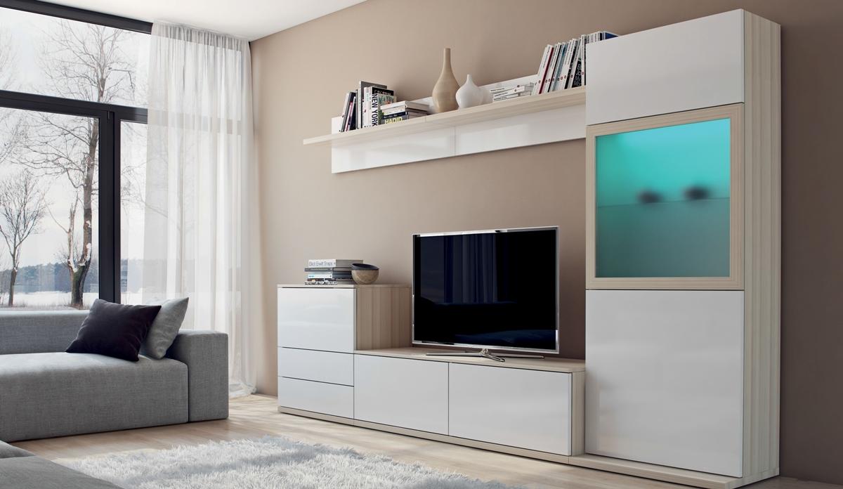 Современную стенку в гостиную из модулей можно приобрести в салонах — как отдельными модулями, так и полным комплектом. Чаще всего такая процедура осуществляется под заказ.