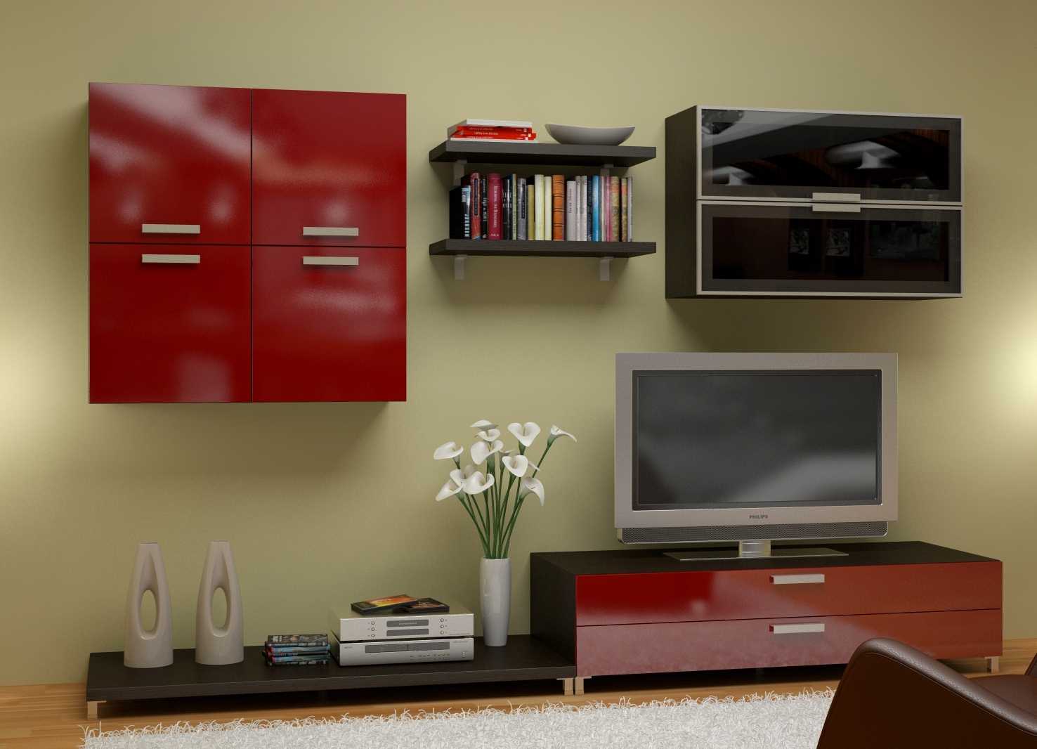 Традиционно стенка в гостиной размещается напротив дивана, а в самой мебели предоставлено место для установки телевизора. Современные модели мебели нередко собираются из отдельных деталей, которые в целом составляют композицию благодаря единому стилю и цвету оформления. Такие модули располагаются «вокруг» ТВ-экрана наиболее удобным образом.