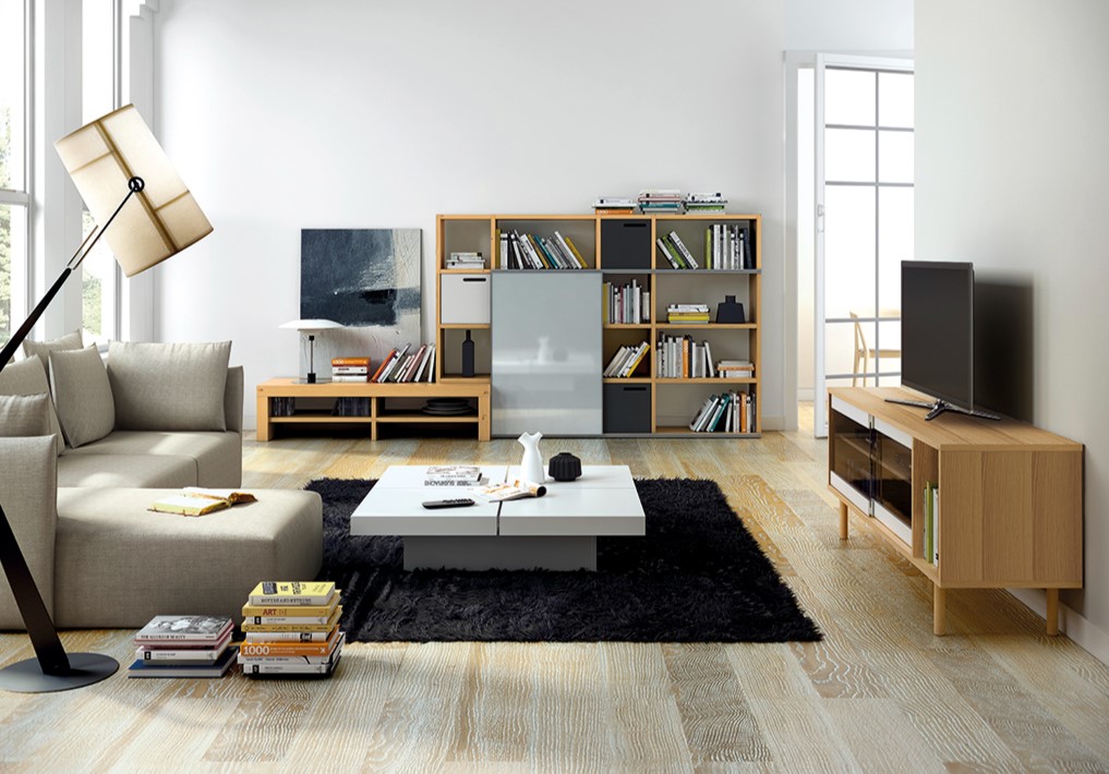 • Высокая степень функциональности. Так как мебель мобильна, она может перемещаться в гостиной и трансформироваться в нужные элементы интерьера, что, в свою очередь, позволит экономить пространство.