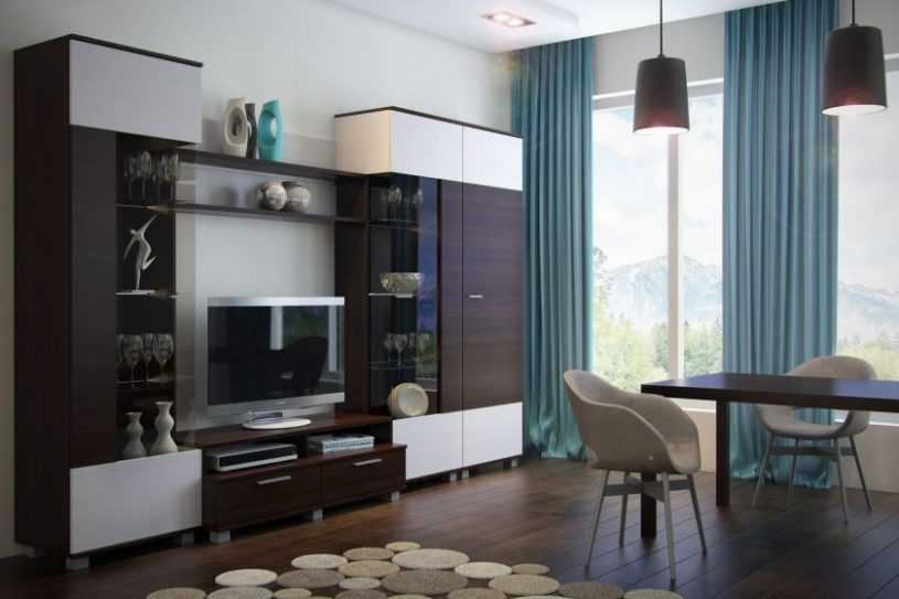 удобно использовать для малогабаритных помещений, так как модульные гостиные вмещают множество вещей. Шкаф или стенка легко умещается в квартирах разной планировки между остальной мебелью. Если захочется сменить обстановку, можно купить дополнительные элементы, шкафчик или навесную полочку;